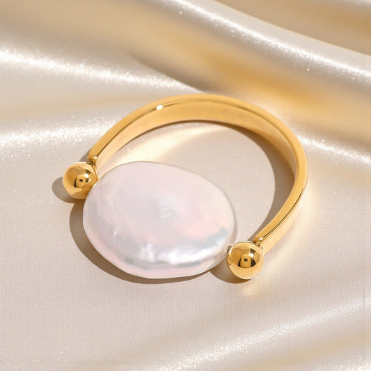 Inel placat cu aur de 18k Glitterati cu perlă