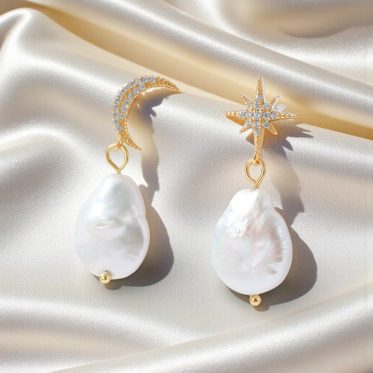 Cercei cu perla baroc, placați cu aur de 18K Glitterati Intention