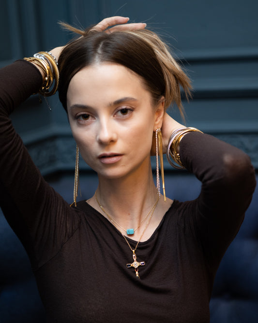 I love the Imperfect and Elysium necklaces because they are so sleek and elegant. They can be paired with a casual outfit, but also with more formal attire. Both necklaces are ideal for layering, but are detailed enough to be worn separately if desired.