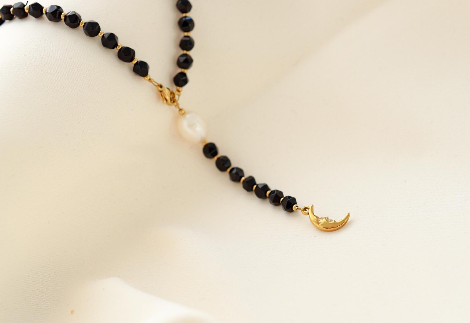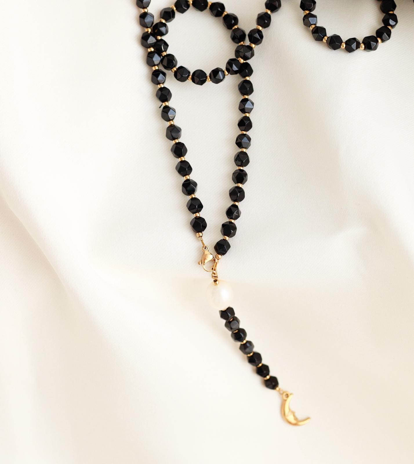 Colier Glitterati cu agat negru și perlă de cultură