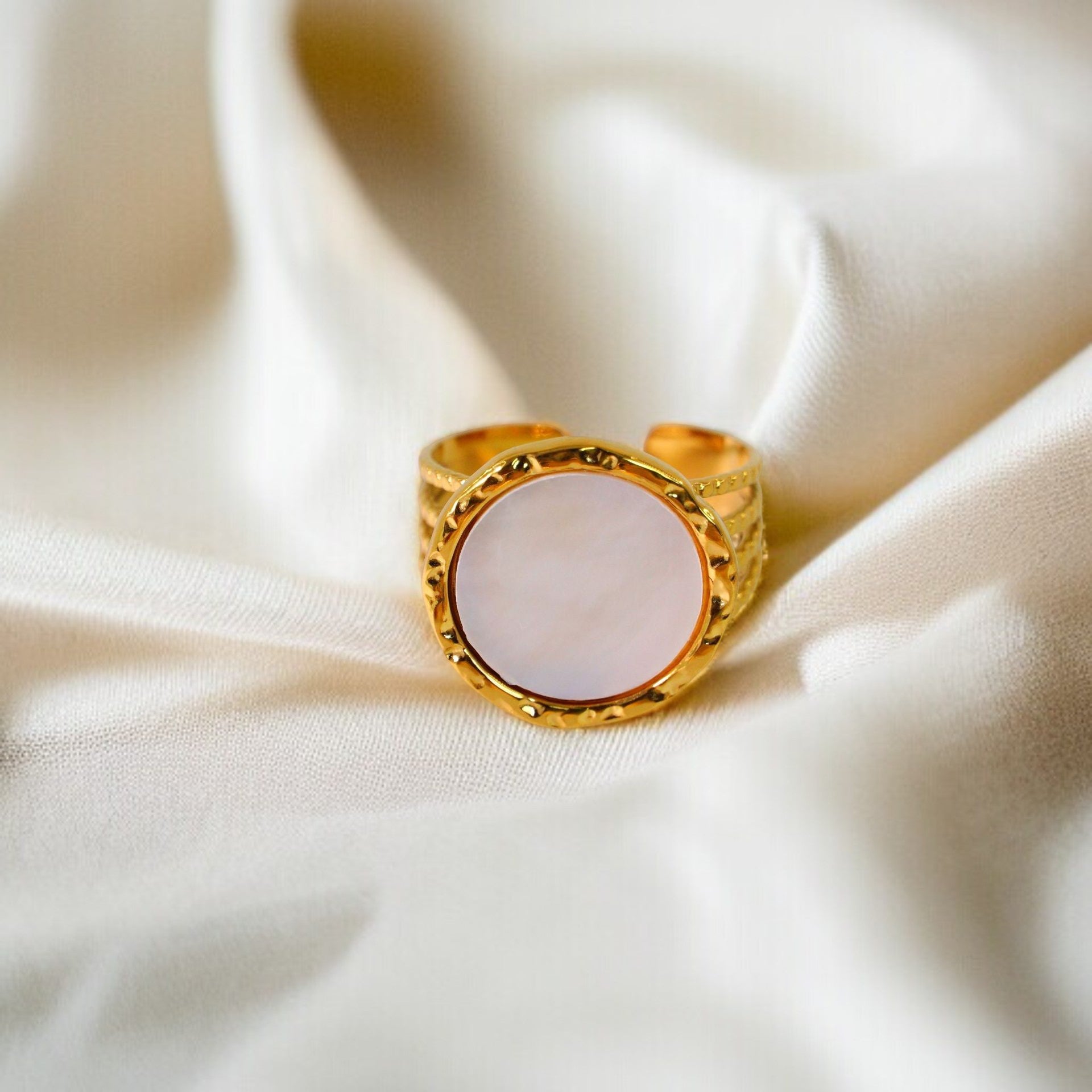 Inel Glitterati din otel chirurgical placat cu aur de 18K și piatră naturală sidef